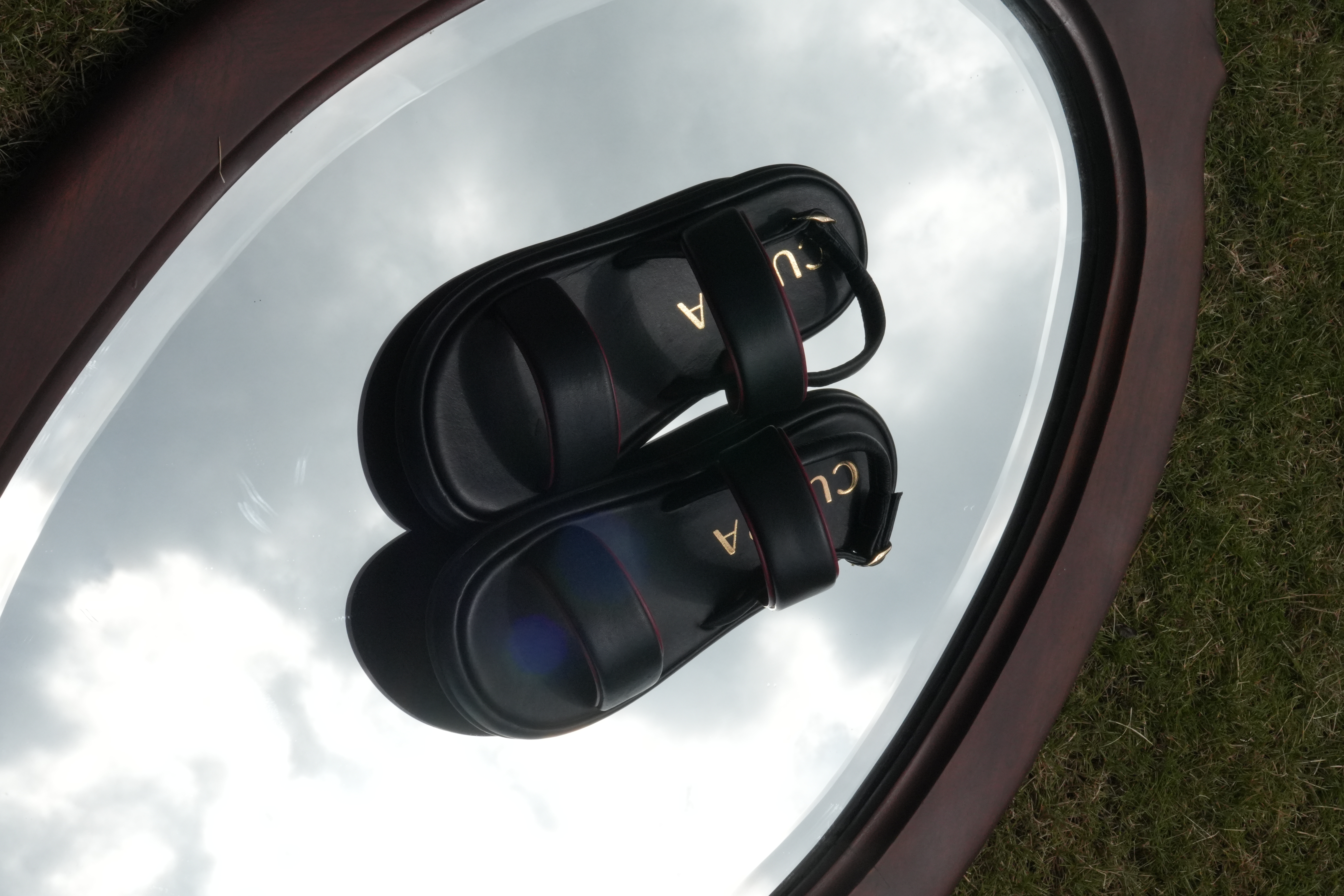Sandalia negra con detalles vino Sutilmente audaz. El contraste entre negro y bordes vino resalta un diseño moderno, cómodo y elegante, pensado para quienes buscan estilo sin esfuerzo.